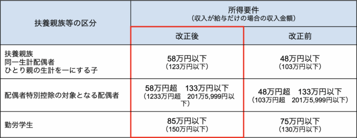 これまで48万円だった所得要件が58万円に引き上げられました。