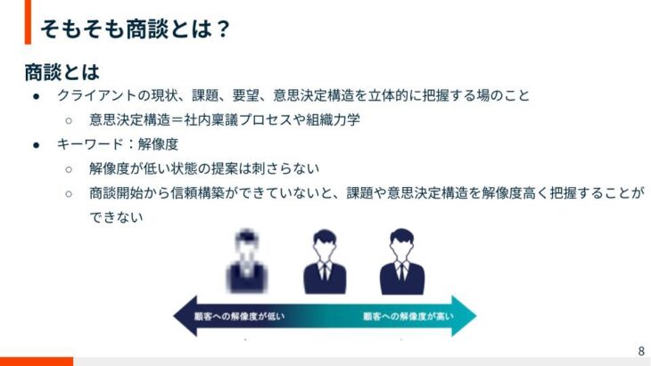 - 商談の構成(ヒアリング → 提案 → クロージング)